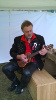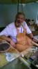 Maz in Mitten seines zu einem Großteil selbst hergestellten authentischem Werkzeug